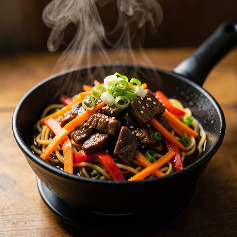 - Gebratene Mie-Nudeln mit Rindfleisch und knackigem Gemüse