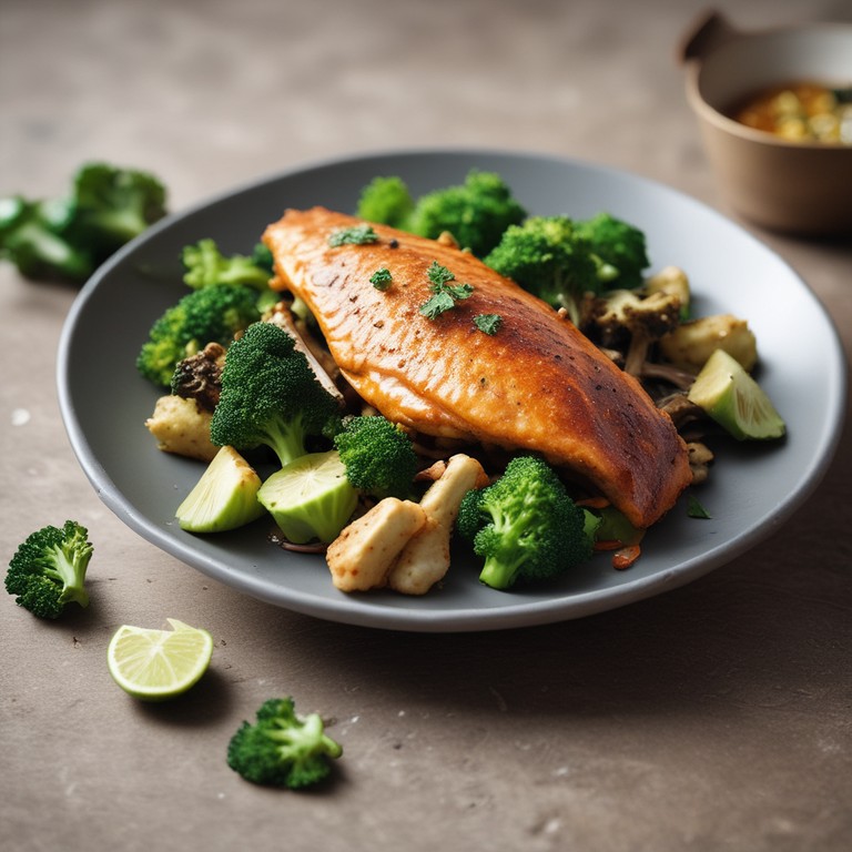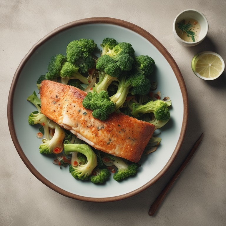 - Gebratener Fisch mit Brokkoli in Thai-Sauce