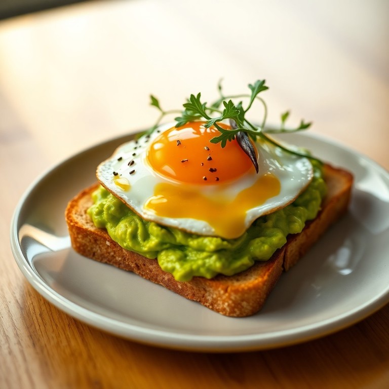 Avocado-Toast mit Rucola und Spiegelei