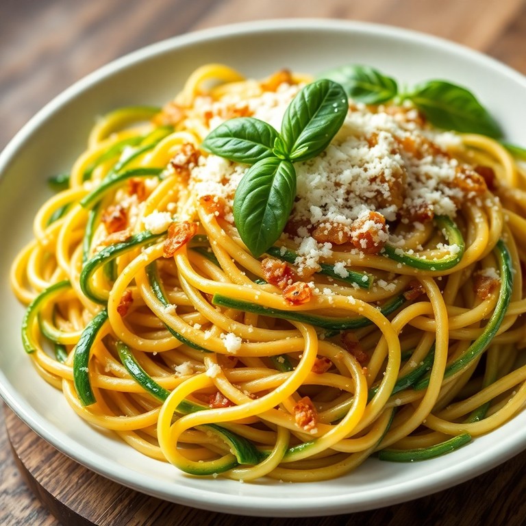 Vegetarische Zucchini-Vollkorn-Spaghetti mit Knoblauch und Parmesan