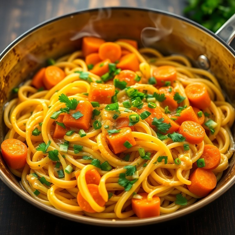 Zucchini-Möhren-Nudelpfanne mit Knoblauch und Kräutern