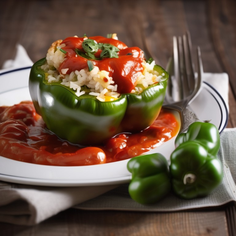 Backofen-gebackene Spitzpaprika gefüllt mit Reis und Feta