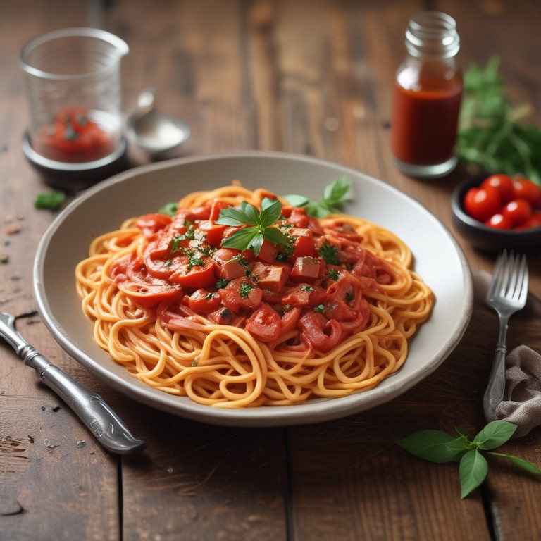 Creamy Tomato Spaghetti with Soy Sauce and Egg
