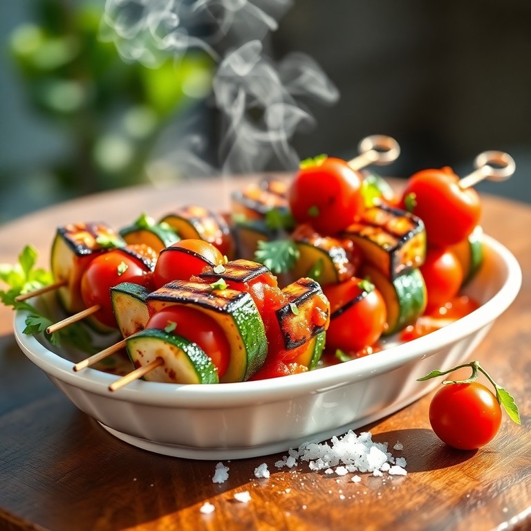 Gegrillte Zucchini-Spieße mit frischer Tomaten-Vinaigrette