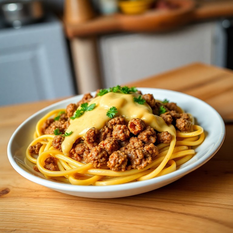 Cremige Hackfleisch-Nudeln mit Sauce Hollandaise