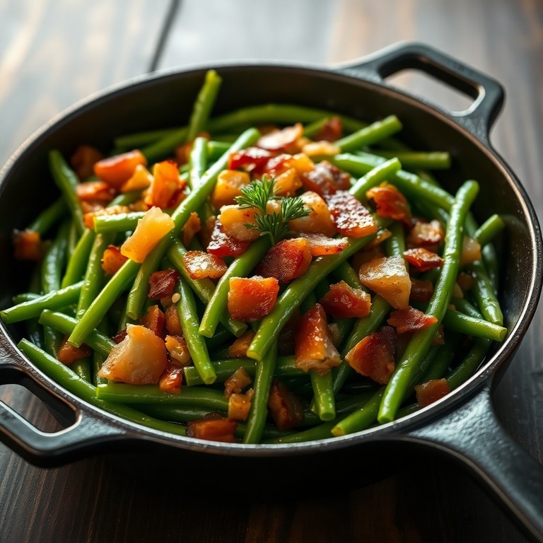 - Gebratene Bohnen mit Speck und Zwiebeln