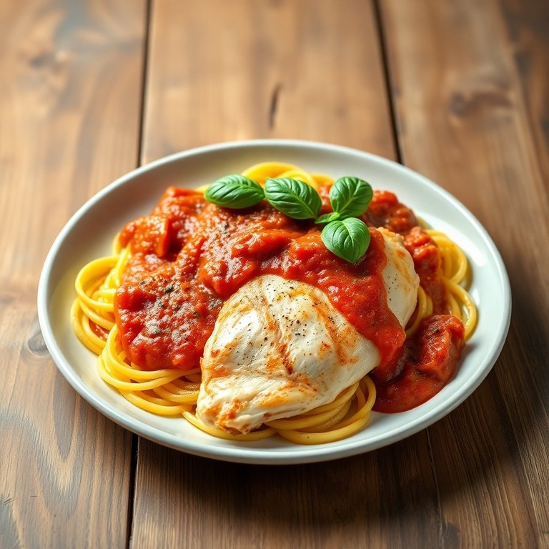 Hühnerbrust mit Spaghettikürbis und Tomatensauce