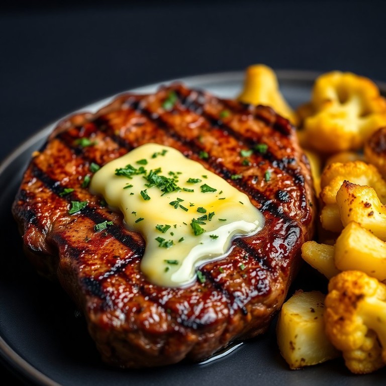 - Saftiges Steak mit Kräuterbutter und Gemüsebeilage