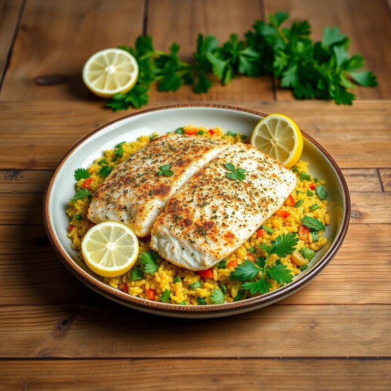 Knuspriger Kabeljau auf Gemüse-Reis-Bett