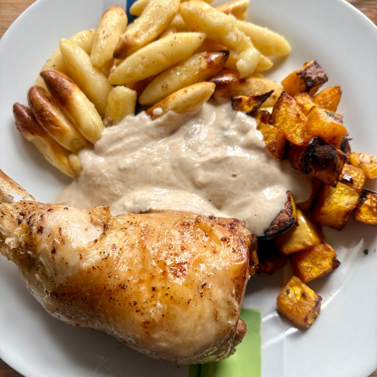 Hähnchenschenkel mit Kürbis aus dem Airfryer