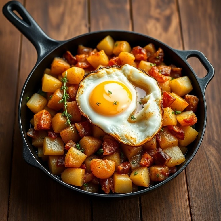 Herzhafte Kartoffel-Zwiebel-Pfanne mit Spiegelei