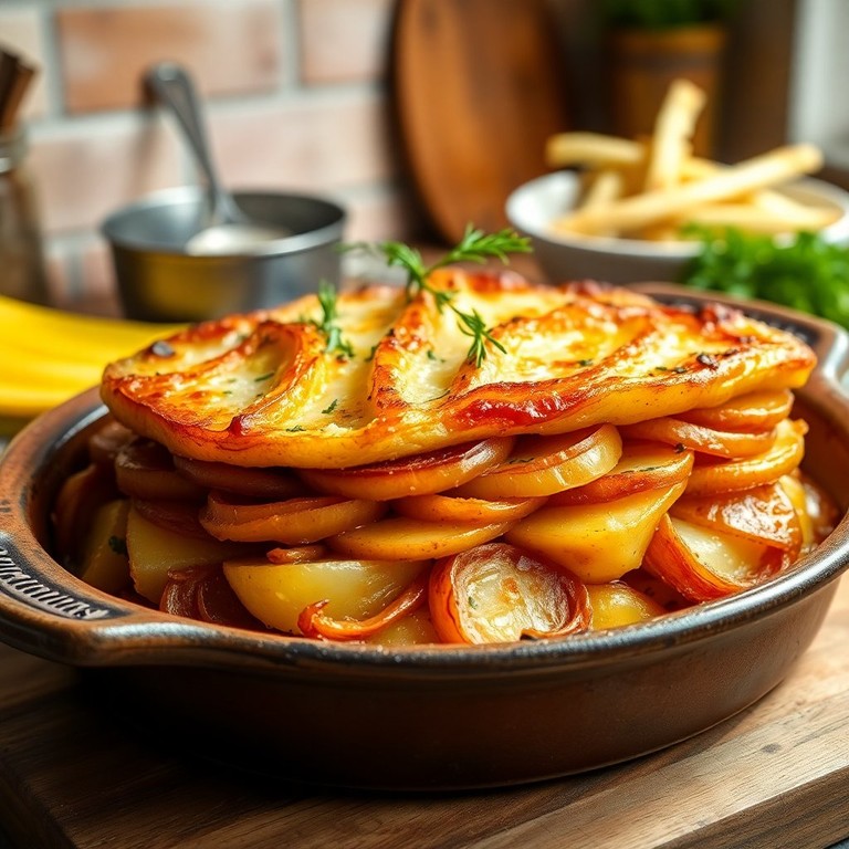 Zwiebel-Kartoffel-Ei-Auflauf mit cremiger Sahnesoße