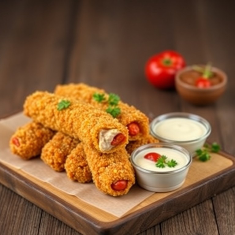 Paprika-Käse-Sticks mit Hähnchenstreifen