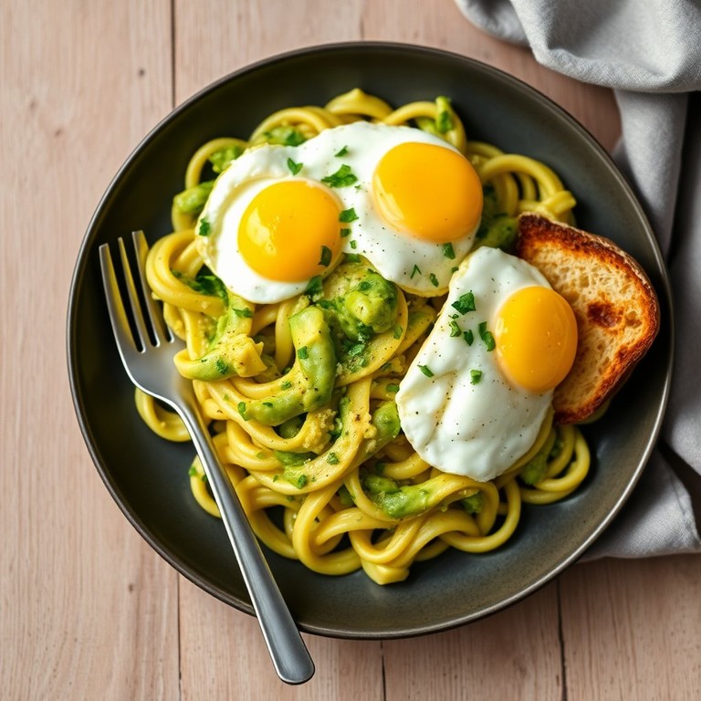 Tostadas de Palta con Huevo y Pesto de Fideos