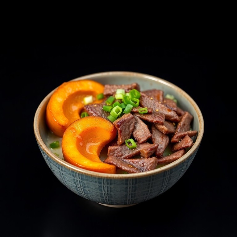Gebratener Eichelkürbis mit mariniertem Rindfleisch