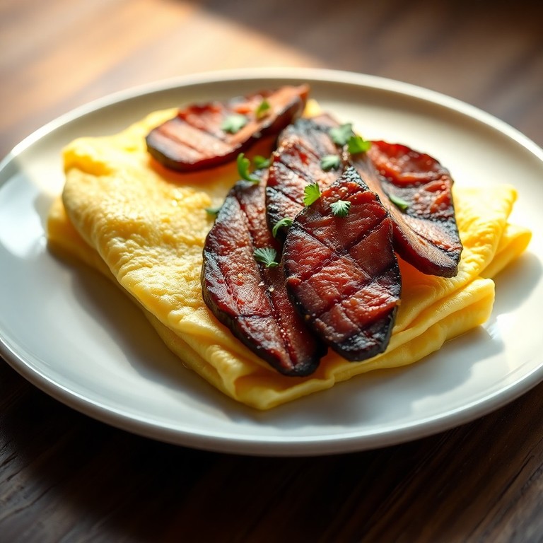 Omelette Gourmande aux Œufs, Crème et Steak Grillé