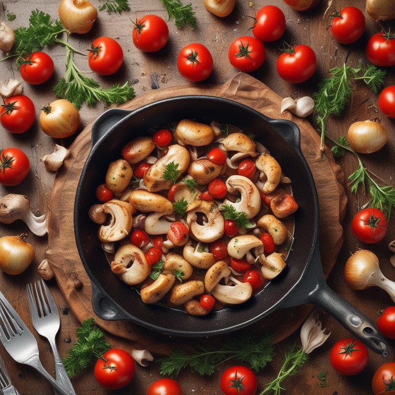 Gebratene Hühnchen Pilze mit Tomaten