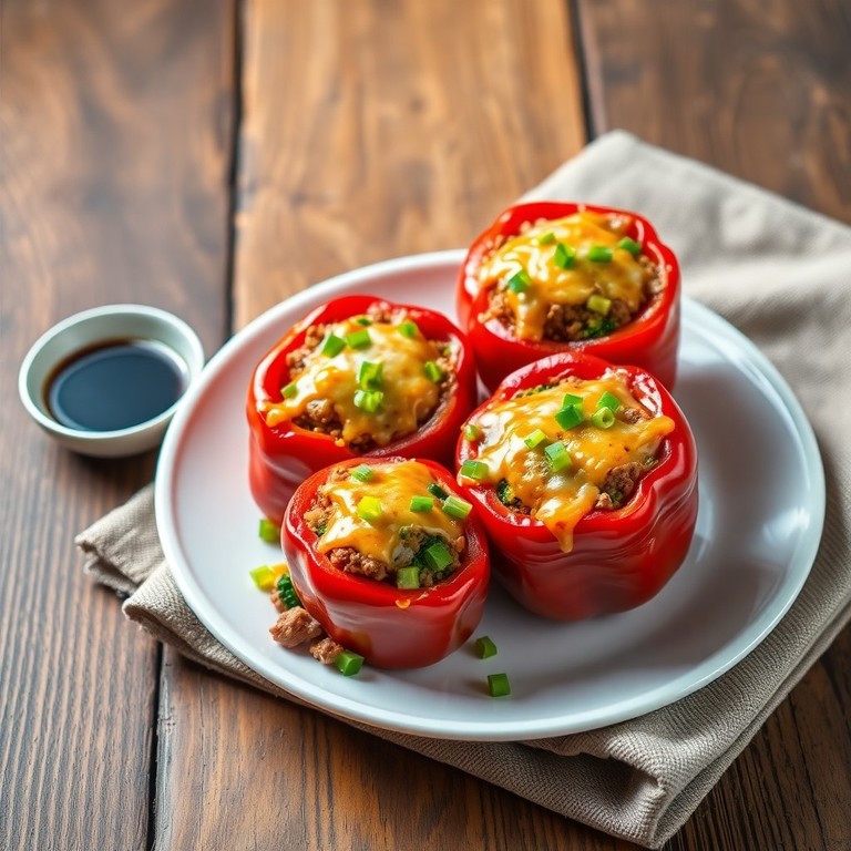 Gefüllte Paprika mit Rinderhack, Brokkoli und Mini Pak Choi