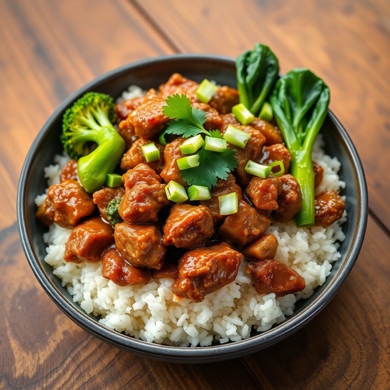 Rinderhackfleisch-Pfanne mit Brokkoli und Pak Choi auf Reis
