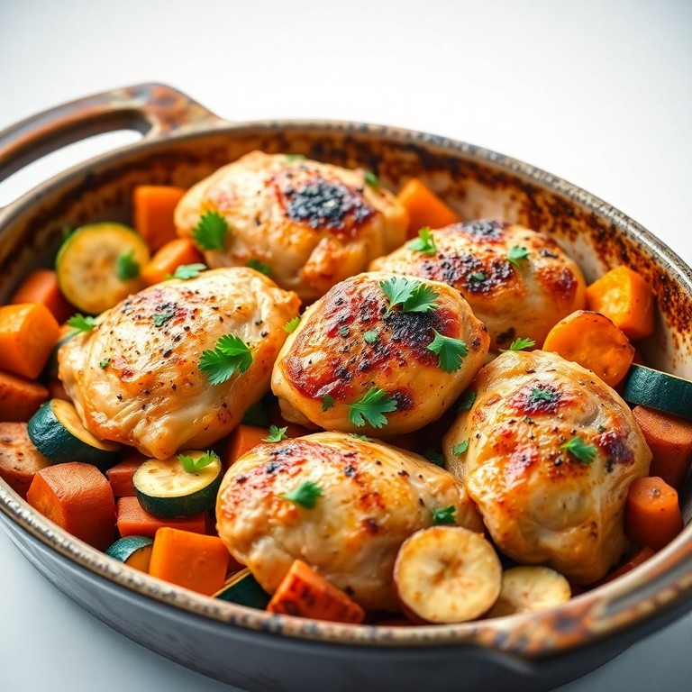 Herzhafte Hähnchenschenkel mit Zucchini und Kürbis