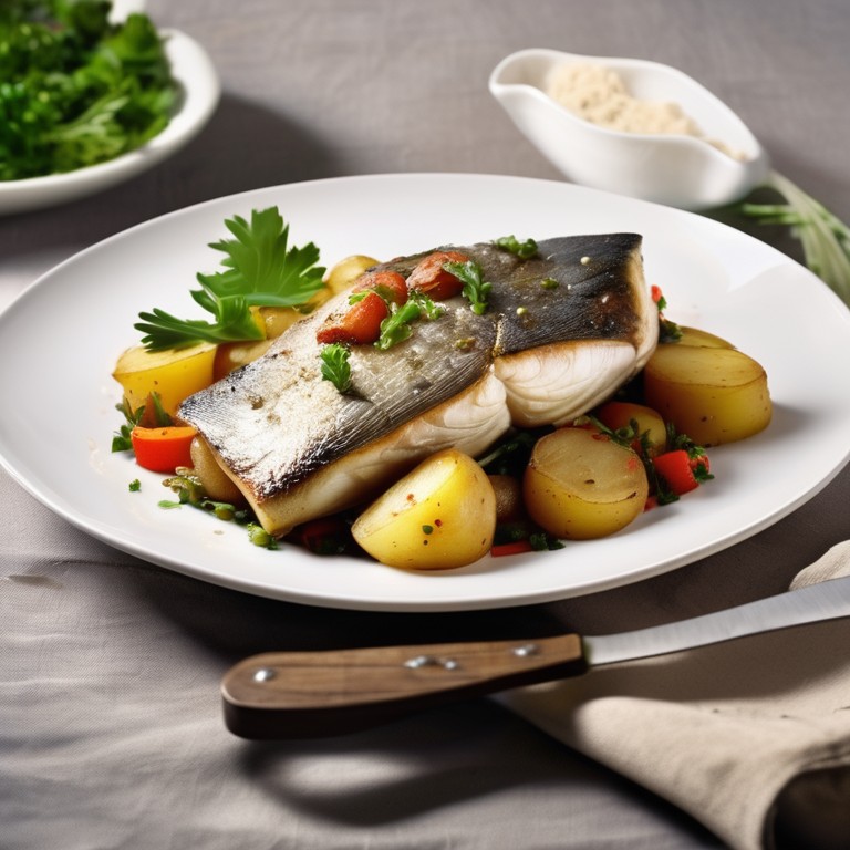 Gebackener Seelachs mit Kartoffeln und Gem\u00fcse
