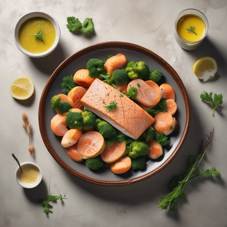 Gebratener Lachs mit Brokkoli, Reis und Zitronen-Kräuter-Soße mit weniger Knoblauch - Sahnevariation