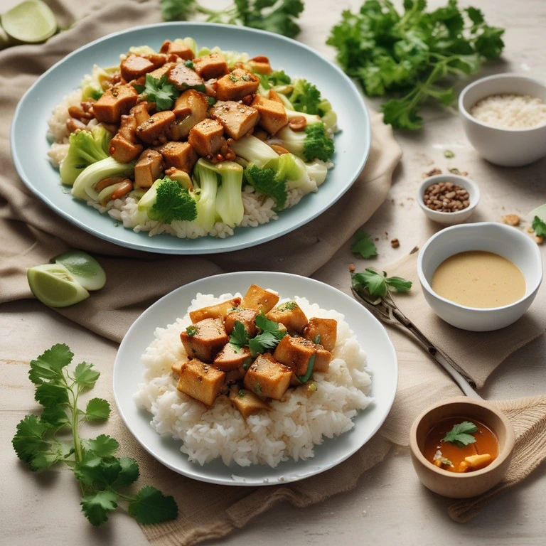 Chinakohl-Erdnusstofu-Pfanne mit Reis