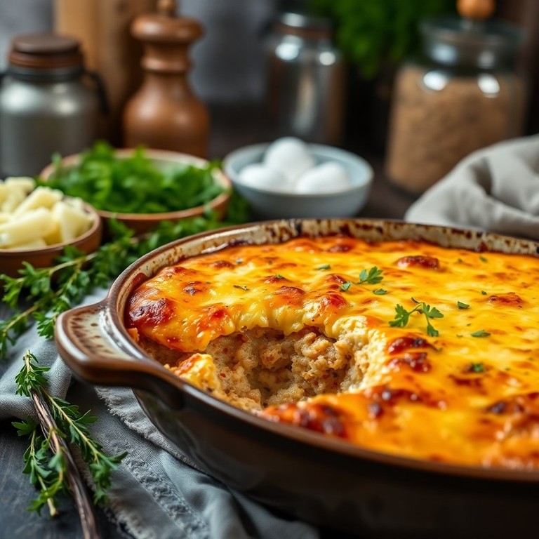 Schnitzel-Pfifferling-Auflauf mit goldener Käsekruste