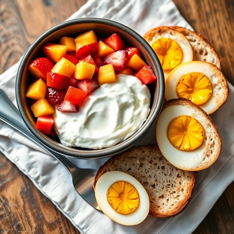 Bowl energético de frutas y queso con huevo en la freidora de aire