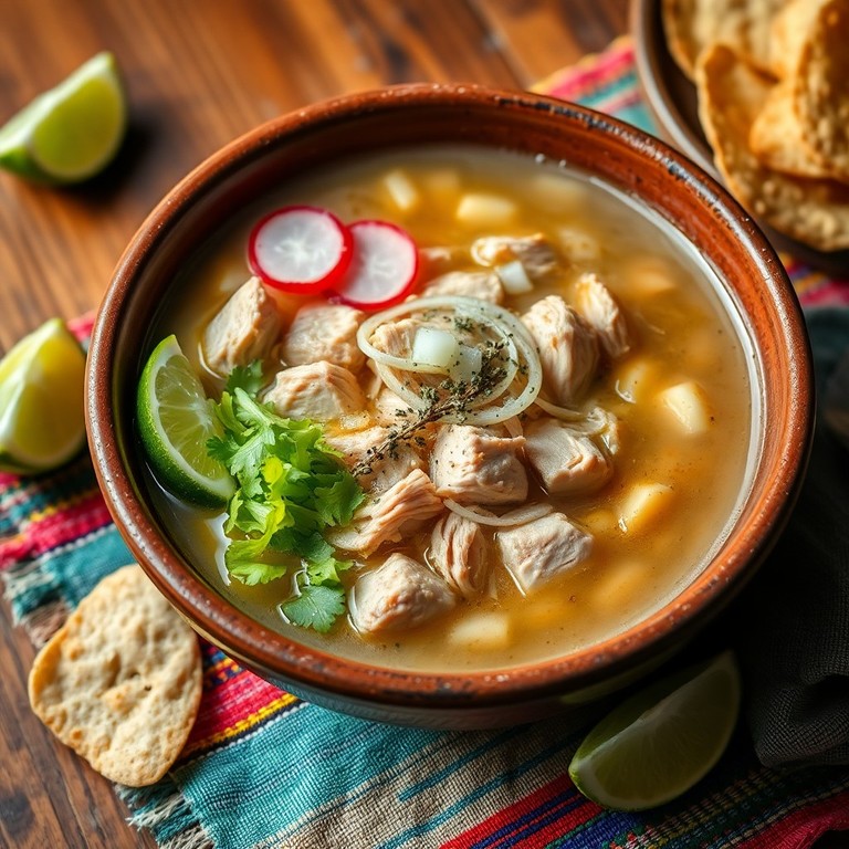 Pozole Blanco de Pollo y Hueso de Cerdo en Estofado