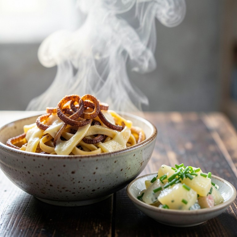 - Klassische Vorarlberger Kässpätzle mit schwäbischem Kartoffelsalat