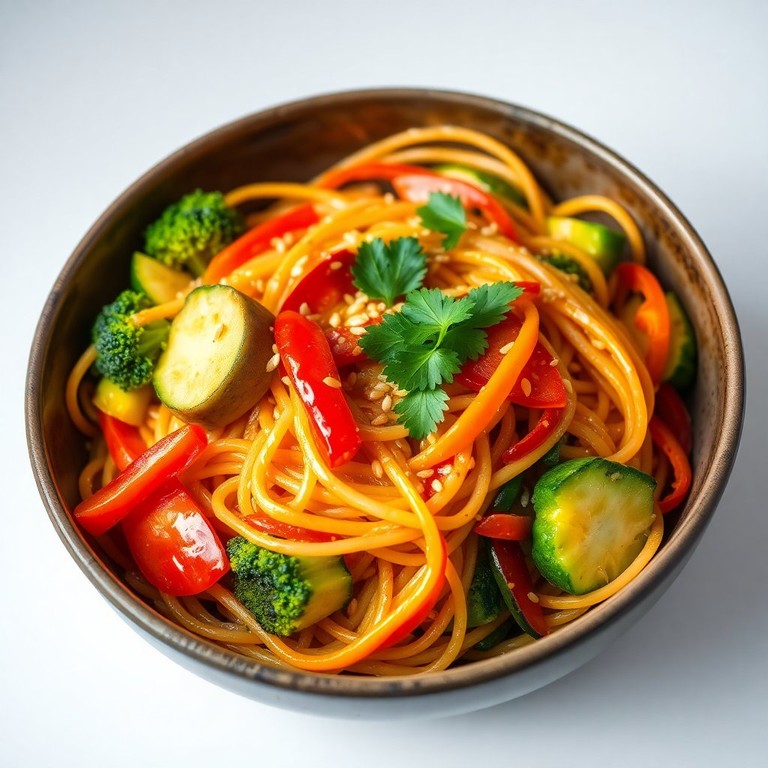 Asiatische Nudelpfanne mit Gemüse und würziger Sojasauce