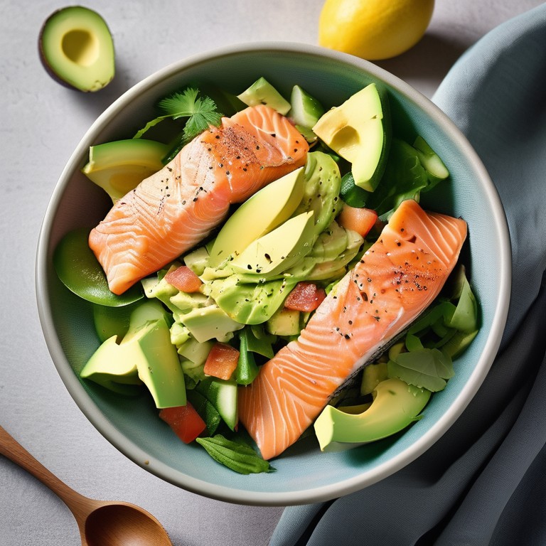 Kalorienarmer Salat mit Lachs und Avocado