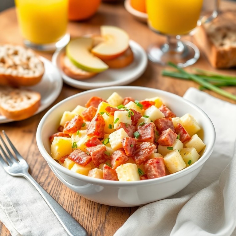 Salami-Eiersalat mit Apfelstücken