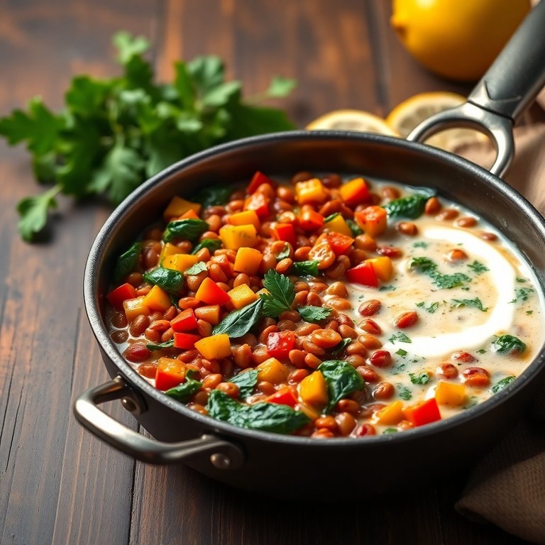 Paprika-Spinat-Linsen-Pfanne mit Kokosmilch
