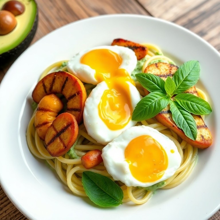 Pasta Cremosa con Salsa de Aguacate y Huevo Pochado
