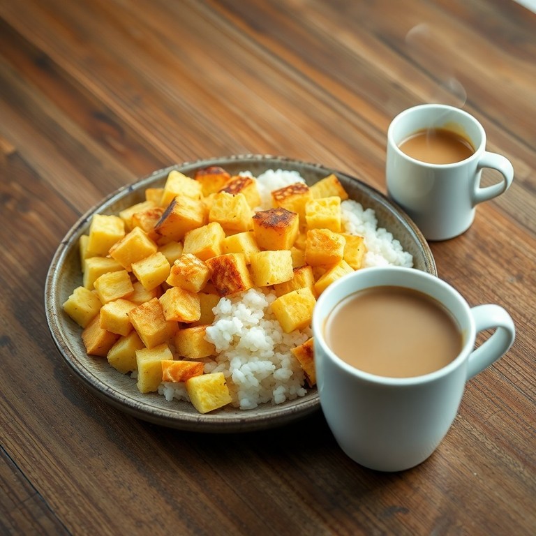 Revuelto de Pan, Huevo y Arroz con Café con Leche
