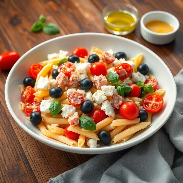 Salade de pâtes méditerranéenne au feta et maquereau