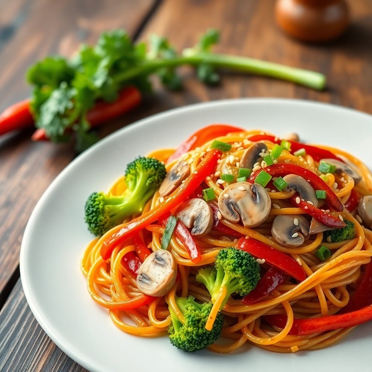 Espaguetis Salteados con Verduras y Salsa de Sésamo