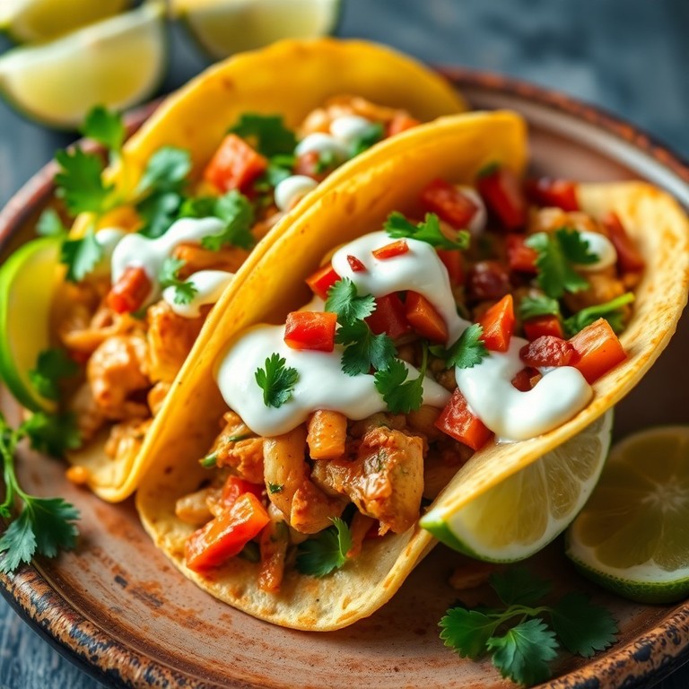 Tacos de pollo y verduras con crema y queso Oaxaca