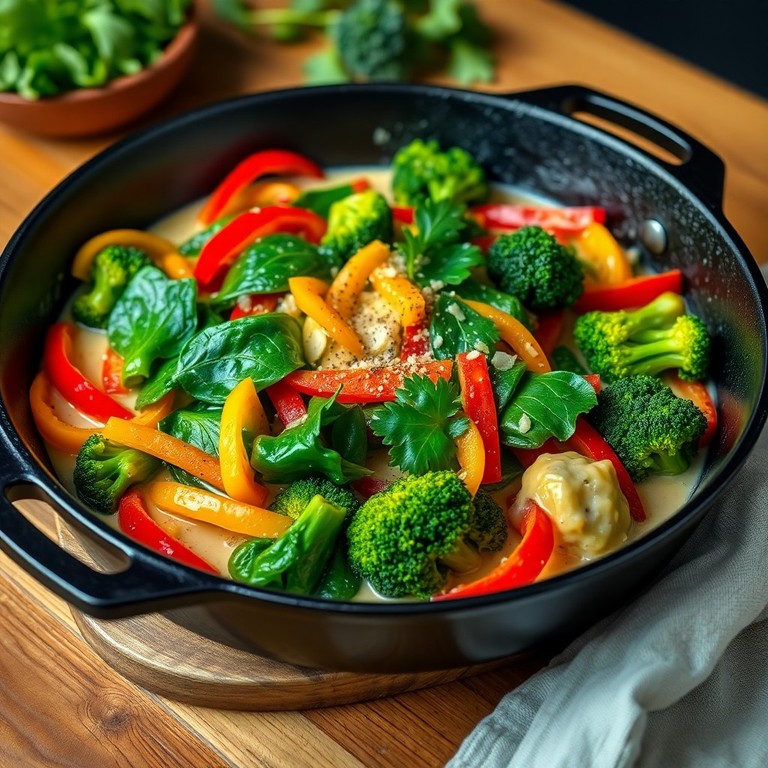 Spinat-Paprika-Pfanne mit cremiger Sahnesoße