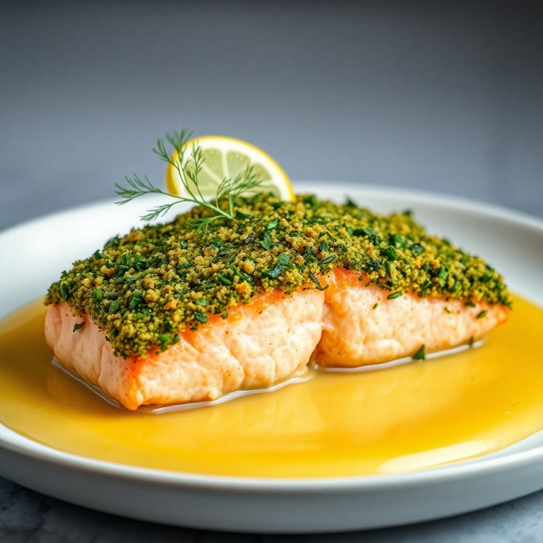Filet de Saumon en Croûte d'Herbes Fines et Sauce Citronnée