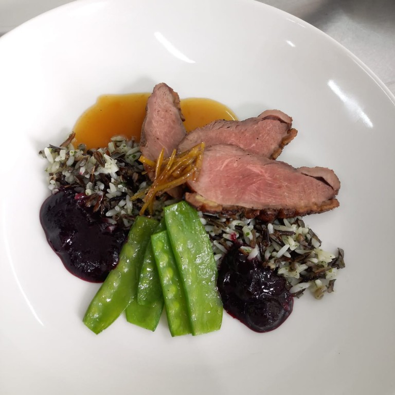 Pato a la Naranja con arroz salvaje