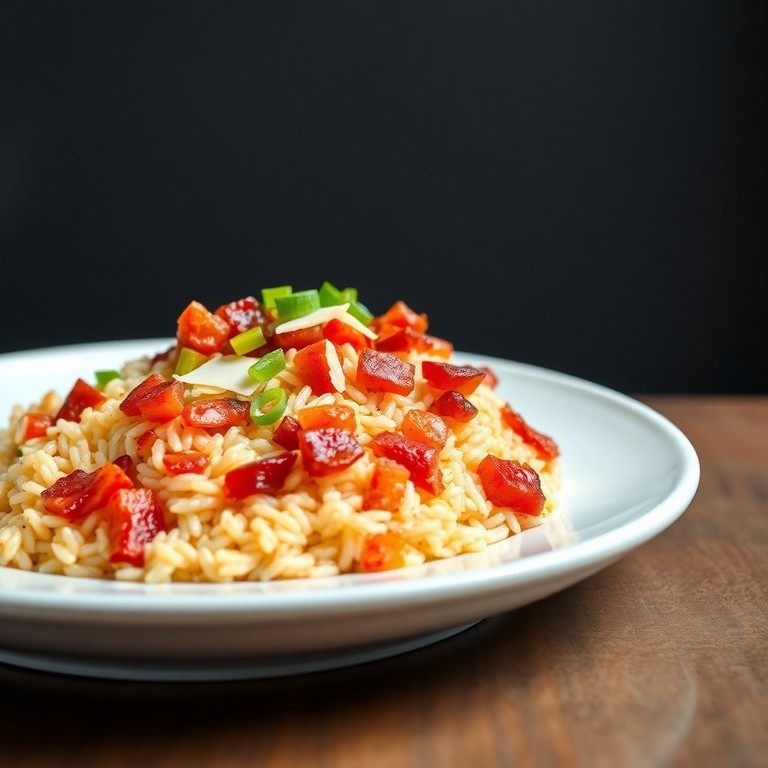 Chicken and Bacon Fried Rice with Red Capsicum and Parmesan