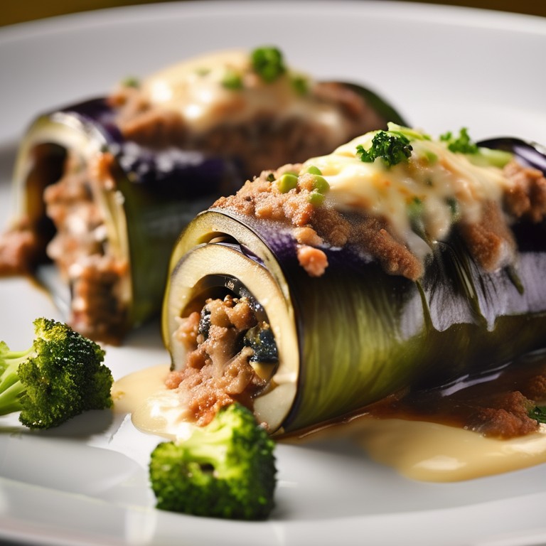 Gefüllte Auberginenröllchen mit Thunfisch und Brokkoli