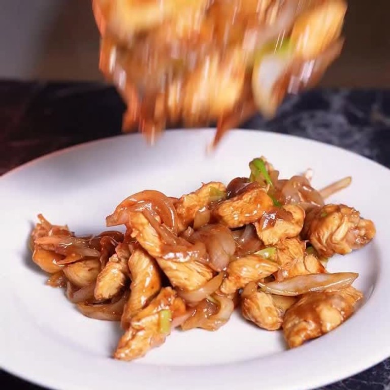 - Hühnerfleisch mit Zwiebeln aus dem Wok