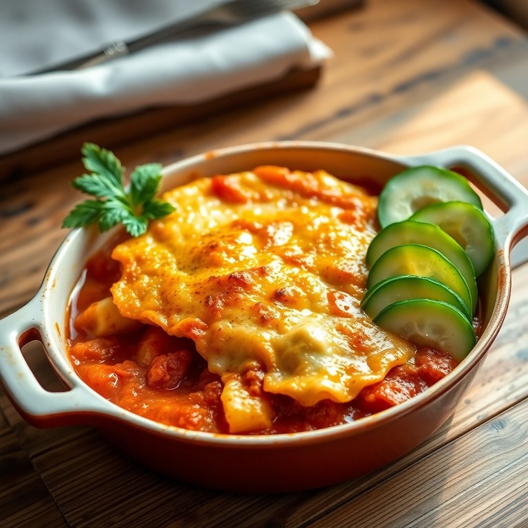 Knöpfli in Tomatenpüree mit knusprigem Butter-Käse-Topping