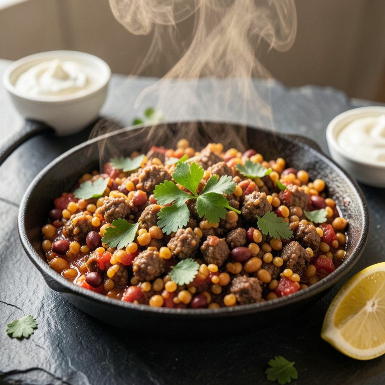 Orientalische Linsen-Bulgur-Pfanne mit Rinderhack