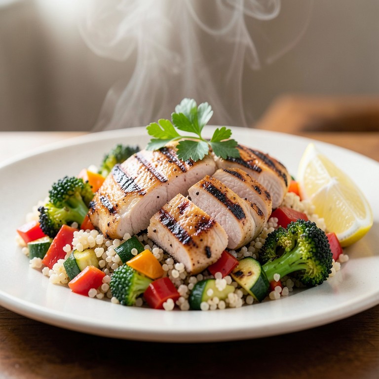 Gegrilltes Hähnchenbrustfilet mit Quinoa und Röstgemüse