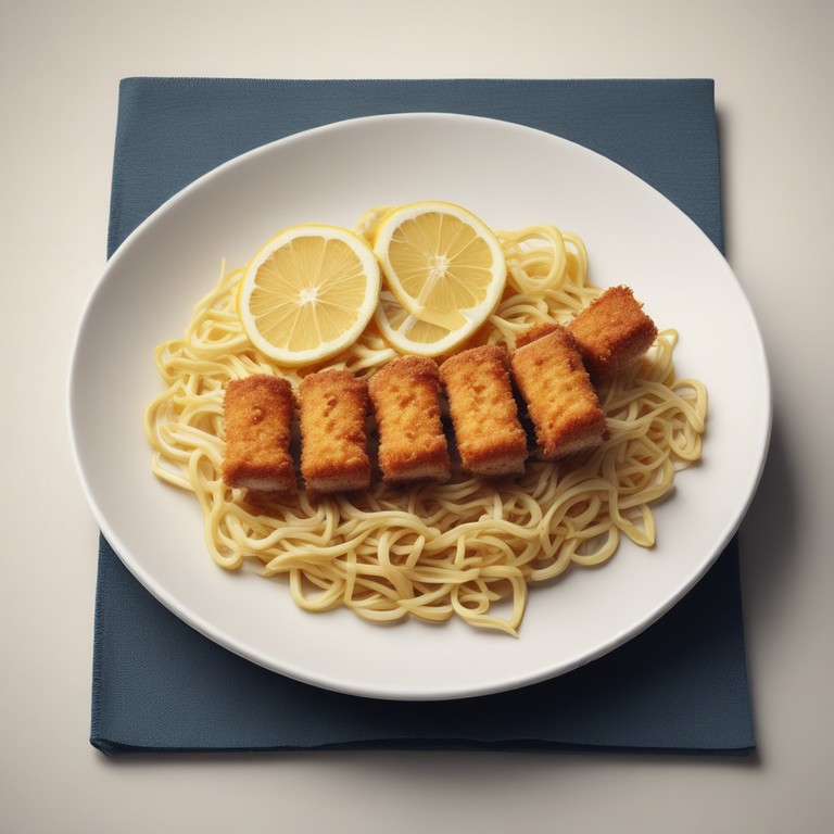 Knusprige Fischstäbchen mit Nudeln